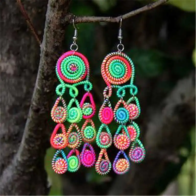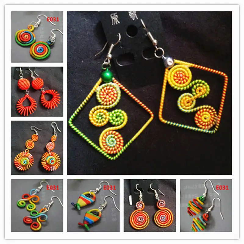 E031 микс оптовая продажа Miao этнический ручная упаковка красочные Шелковые нитки милые серьги для девочек 10 шт. в партии Смешанные Бесплатная доставка