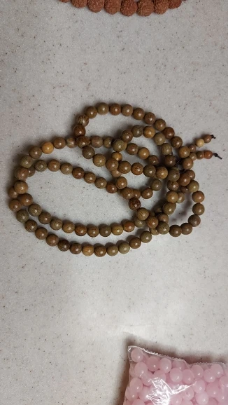 шикарное качество бусин! приятный и тонкий запах дерева! не хочется выпускать из рук. в Москву доставлено в течение 2 недель.