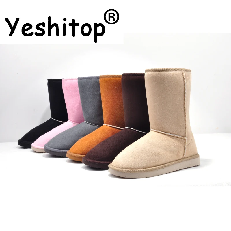 YESHITOP бренд 2021 модные 24 см зимние сапоги женские снежные сапоги на плоской подошве botas de neve бежевый, черный, серый, кофейный, розовый,