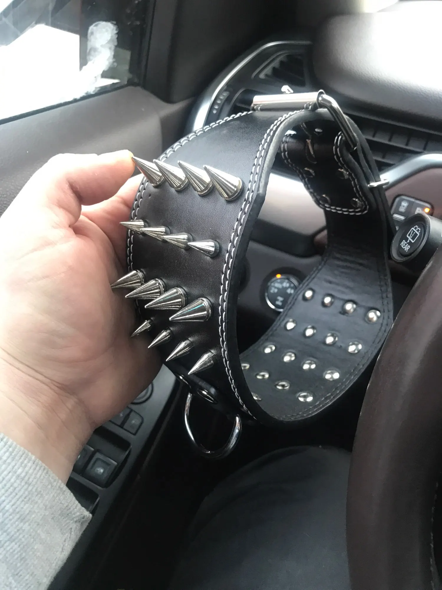 Кожаный ошейник с шипами шириной 3 дюйма для собак крупных пород, питбуля, добермана, Размеры M, L, XL