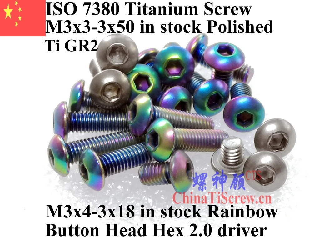 ISO 7380 M3 титановый винт M3x3 M3x4 M3x5 M3x6 M3x7 M3x9 M3x8 M3x10 M3x12 M3x14 M3x15 M3x16 M3x18 Шестигранная головка 2 драйвера TiGR2