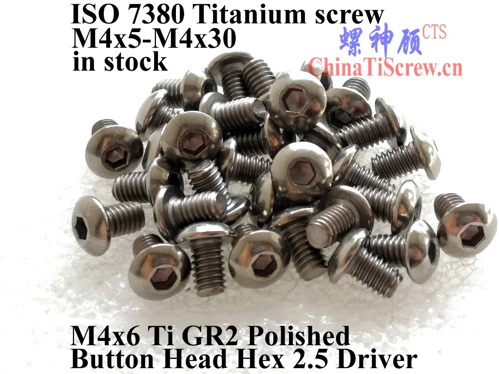 Титановый винт ISO 7380 M4, M4x5, M4x6, M4x8, M4x10, M4x12, M4x14, M4x15, M4x16, M4x18, M4x20, M4x22, M4x25, M4x30, Шестигранная головка для кнопки 2,5, TiGR2