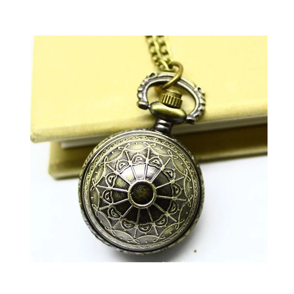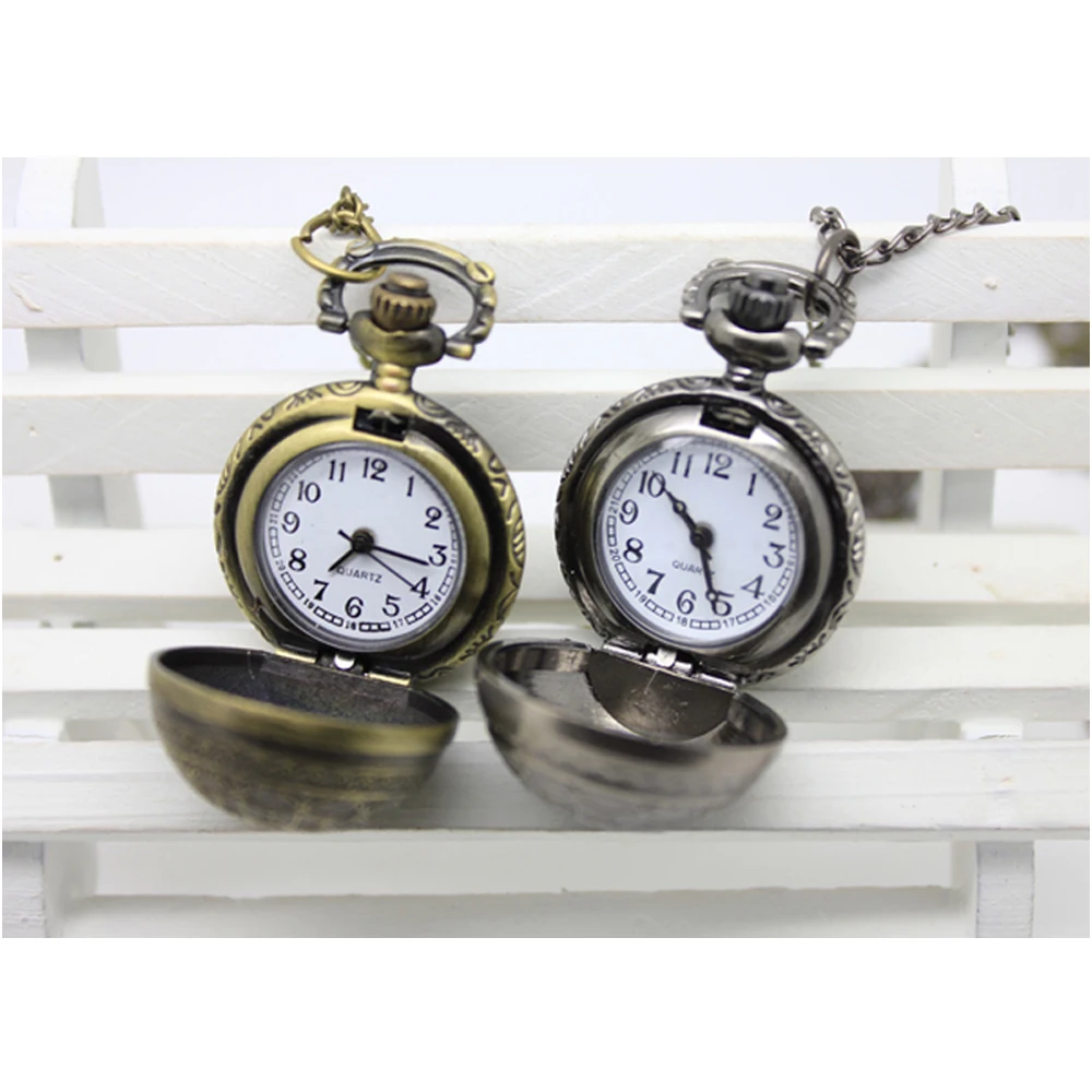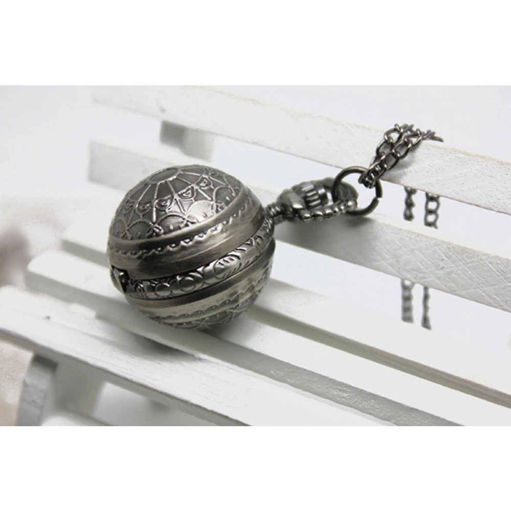 (3081)12 шт.лот Античная бронзовая Сфера паутина круглый шар кварта часы ожерелье, оптовая продажа Рождественская вечеринка повесить подарок стимпанк