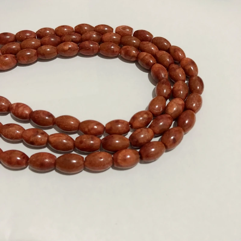 Мода 1 нить Besds красный губчатый Коралл 8x12 мм рисовый коралл ювелирные изделия свободные бусины 15,5 дюйма
