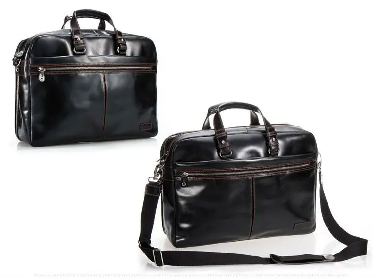 Бесплатная доставка, высококачественный мужской черный портфель из натуральной кожи, мужская сумка через плечо, кожаная сумка-мессенджер, 15 дюймов, сумка для ноутбука, дорожная сумка