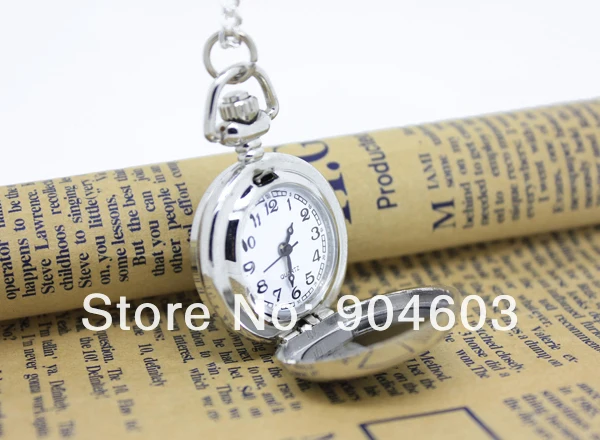 (6005S) серебристое ожерелье кварцевые карманные часы с цветком птичьей клетки с зеркалом, диаметр 2,9 см. Смешанный дизайн. 12 шт.лот.