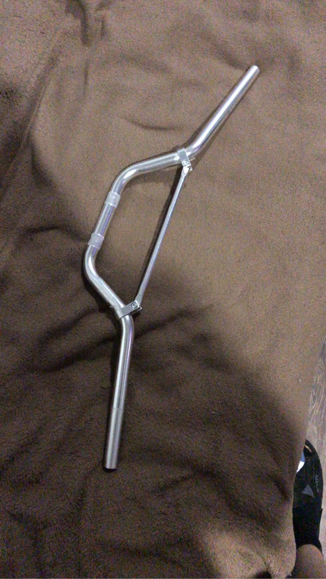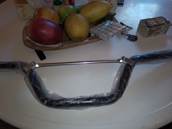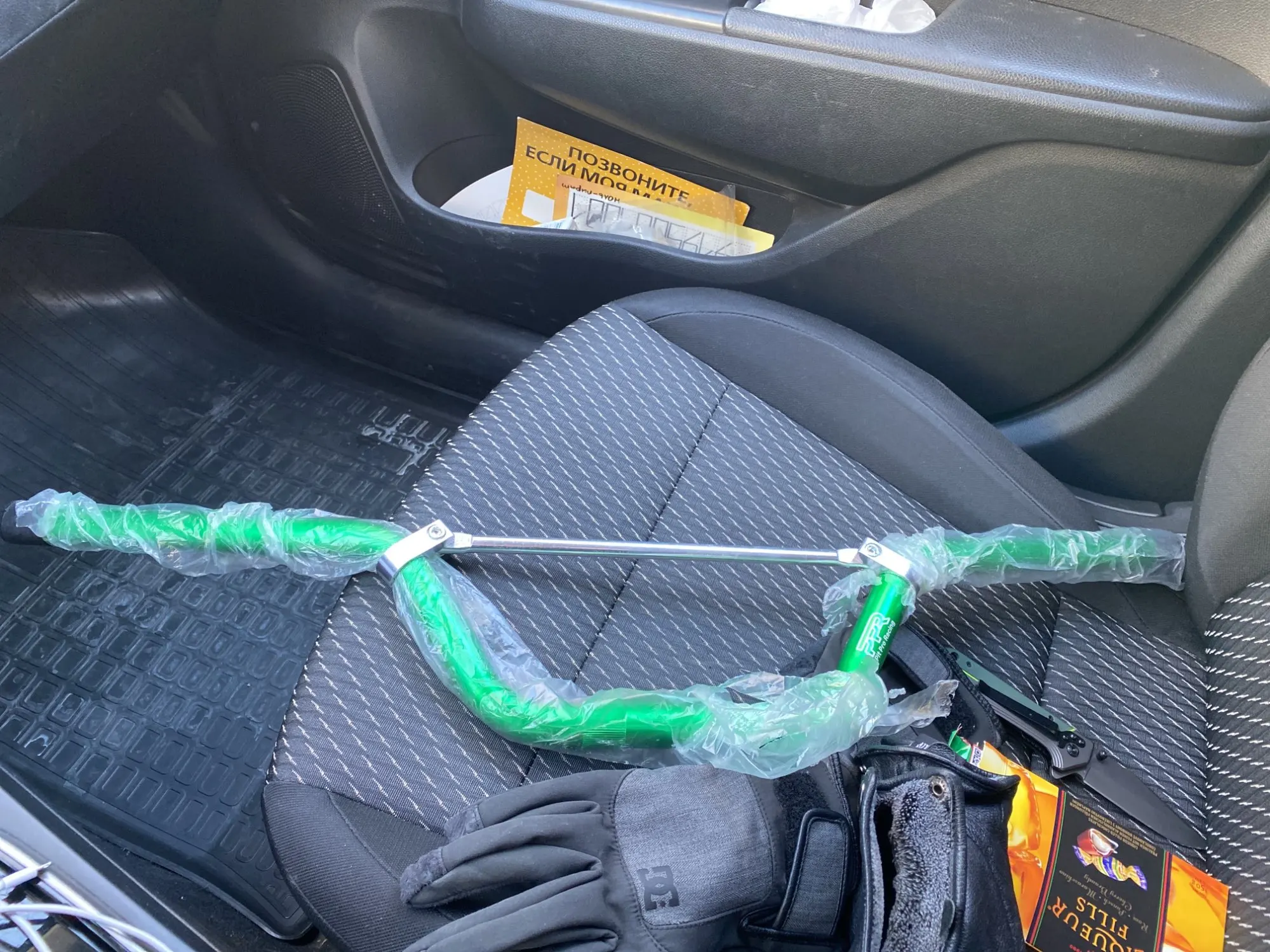 Пришёл руль. В принципе неплохой. Распорка тонкая очень, поставил родную которая в 2 раза толще. Согнуть руками не получилось, а вот при падении ему будет 100% дамага. За свои деньги нормально.