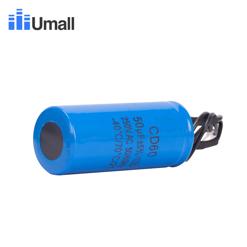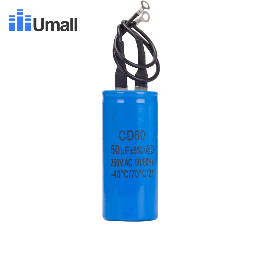 CD60 50 мкФ 250 В переменного тока пусковой конденсатор для тяжелых электрических двигателей воздушный компрессор красный желтый два провода