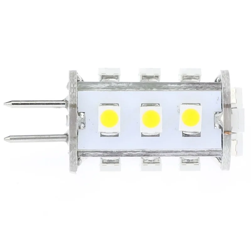 Высокомощная Светодиодная лампа G6.35, 0,9 Вт высокомощная светодиодная точечная лампа, 15 шт. 3528 SMD, светодиодная Запасная лампа, 6400 k дневной свет белый и 3500 K теплый белый с G4 фитингом, подходит для стандарта GU53/MR16/MR11. 2 контакта, 100-120 лм яркость эквивалентна 10 Вт-15 Вт галогену. Может также использоваться в домах для замены галогенных ламп 12 вольт и 24 вольт, оптимальное использование с источником питания постоянного или переменного тока.