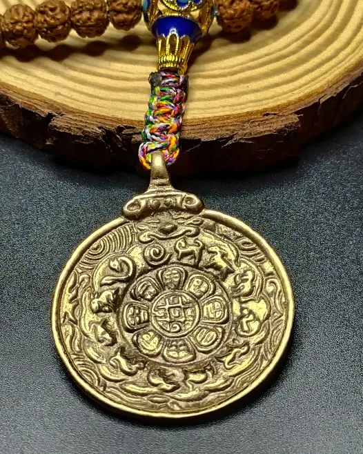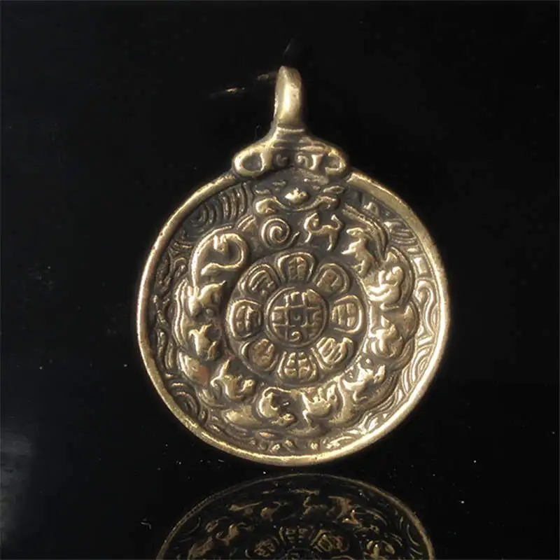 TBP208 Тибетский латунный Золотой амулет, бирка на талию Jiugong Bagua 12 zodian, животные, тибетский Тотем для мужчин