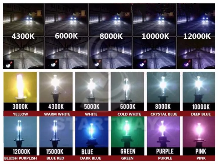 Цветовая температура HID лампы H7 металлическое основание: 6000K