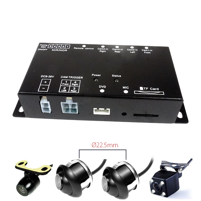 Автомобильный видеодатчик парковки заднего хода, вспомогательный Радар для парковки автомобиля, радар с цифровым дисплеем для DVD TFT Скидка 15% на распродажи4Блок управления камерами с TF-картой и четырьмя видеозаписямиDЧетыре способаВидеорегистратор