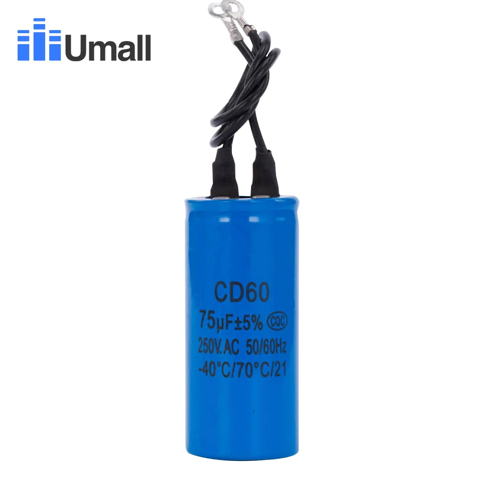 CD60 250V 75UF AC пусковой конденсатор для тяжелых электрических двигателей воздушный компрессор два провода