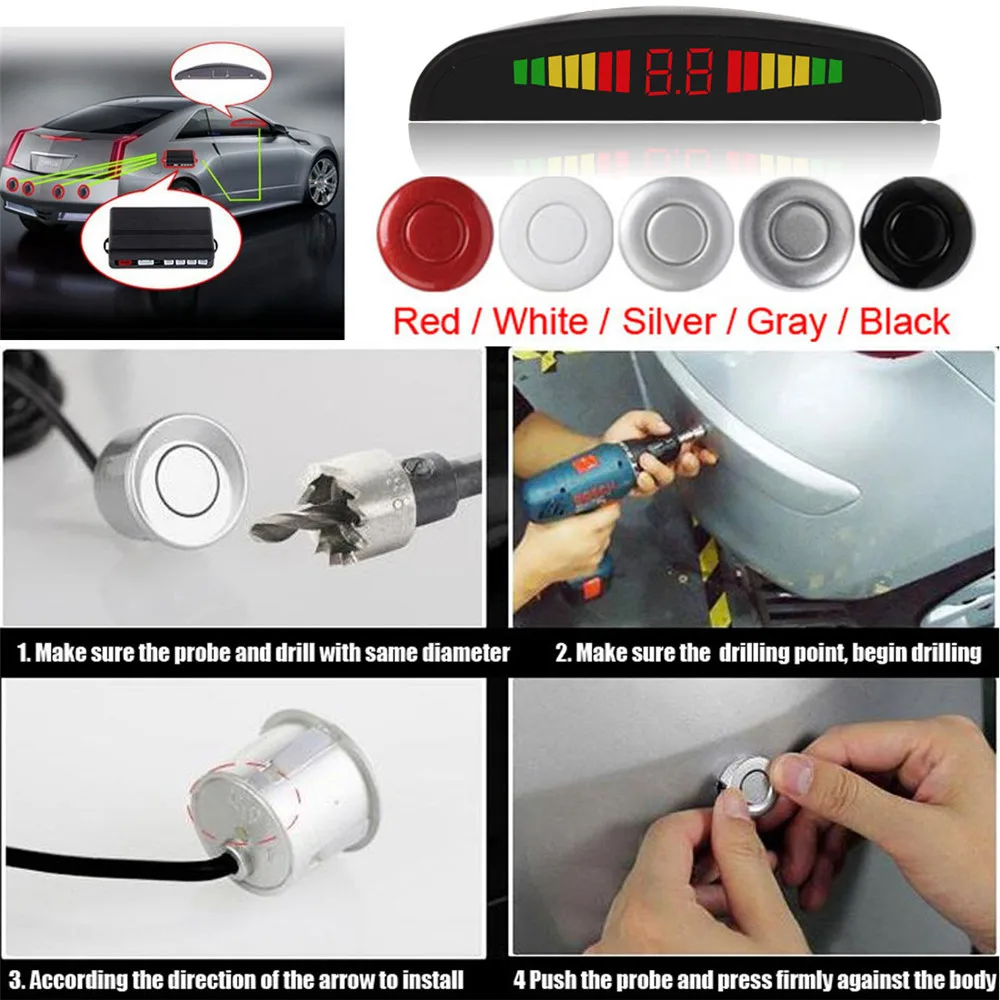 -Он оснащен светодиодный дисплеем и 4 датчиками парковки.