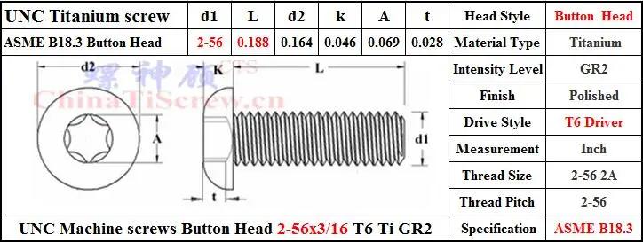 Полукруглой головкой 2-56 Титан винты 2-56x18 2-56x532 2-56x316 2-56x14 2-56x516 2-56x38 2-56x12 Torx T6 драйвер Ti GR2