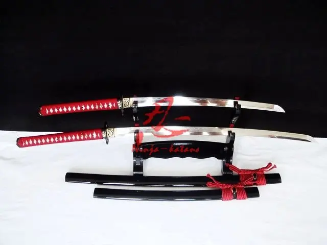 -Общая длина: катана: 103 см/40,5 дюйма wakizashi: 81 см/31,9 дюйма -Nagasa длина/Материал: катана: 71 см/28 дюймов/изогнутая сталь + 1095 углеродистая сталь wakizashi: 51 см/20,1 дюйма/изогнутая сталь + 1095 углеродистая сталь -Длина ручки/Материал: катана: 26 см/10,2 дюйма. Чистый шелк, твердый деревянный. Подлинная кожа акулы; wakizshi: 20 см/7,8 дюймов чистый шелк, твердый деревянный. Аутентичные акулья кожа -Habaki/Seppa: изготовлен из латуни; -Крепления: изготовлены из меди; -Sageo: изготовлен из чистого шелка высшего качества. -Saya (ножны): черный лакированный be sheeny. -Лезвие:Катана/вакизаши: 2 лезвия меча были выкованы вручную с использованием древнего способа изготовления меча. Ручное Кованое лезвие с полным Танг может отрезать татами с ударом. Две части наружной стали куртки (изогнутая сталь) обернуты вокруг относительно более мягкой, внутренней железной сердцевины, которая устойчива и может поглощать удары, таким образом, уменьшает возможность лопасти или сгибания лезвия. Более важно, что это лезвие, сделанное из pucker стали, AISI 1060 углеродистая сталь была выкована несколько раз, а затем быть формованной прокатной стали, которая называется изогнутая сталь. Разделитель на 2 стороны AISI 1095 углеродистой стали. Высокоуглеродистая сталь делает кромку прочной и достигает стандарта резки. Один кусок железа в ядре и изогнутая сталь держать лезвие более гибким. Видимое волнистое зерно На лезвиях было вызвано многократным сложением во время ковки. И лезвие было отполировано вручную несколькими камешками японского способа, это сделало лезвие очень гладким и блестящим. Это лезвие было обкладка глиной и имеет более 14 обработки ручной заточки. Хамон в результате закалки и закалки. Эта Катана может быть удалена полностью в любое время для обслуживания, как показано на изображении. Вы можете развернуть лезвие из ручки, вынимая две колышки. Это заточенный готовый для битвы самурайский меч катана очень подходит для iaido или kendo. Это также коллекция для себя или Подарите своим друзьям, не упустите такие лучшие изменения. Иначе сумка для меча поставляется с этим мечом. Эта Катана для тех, кто хочет настоящий меч. Меч сделан в точном же способе древнего японского процесса изготовления мечей и более острым, чем бритва. Аксессуары меча аутентичны от ручки лучевой кожи до шалфея-о и медные фитинги. Это лучший меч, который вы найдете в ценовом диапазоне и хороший