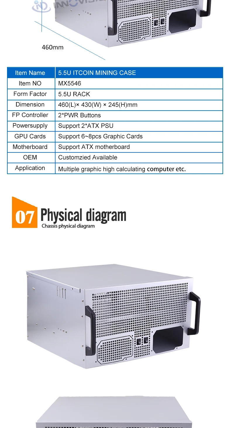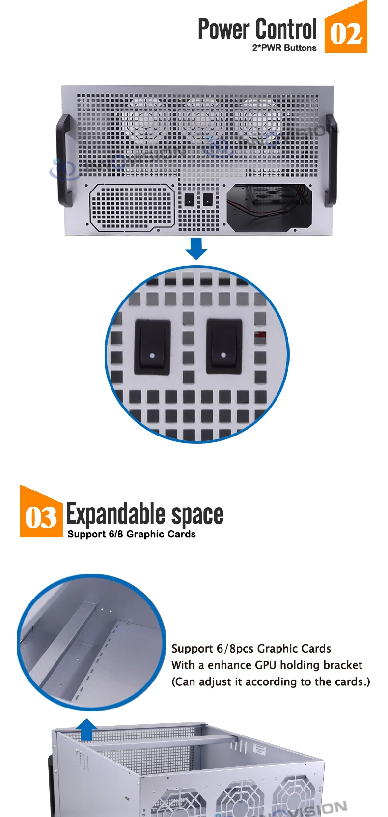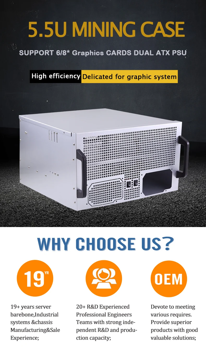 Чехол для сервера для майнинга, 6GPU 8GPU, bitcoin rack, 5.5U, глубина 19 дюймов 460 мм