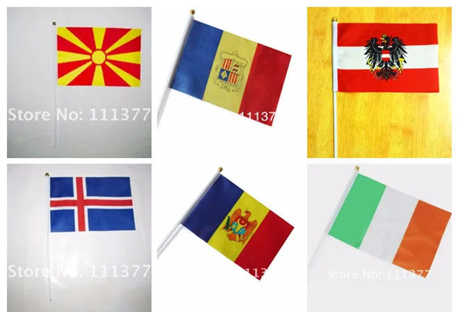 Андорра Австрия Исландская ИрландияФлаги 14*21 см с пластиковые шесты, они являются необязательными, вы можете выбрать, какие флаги вам нужны.