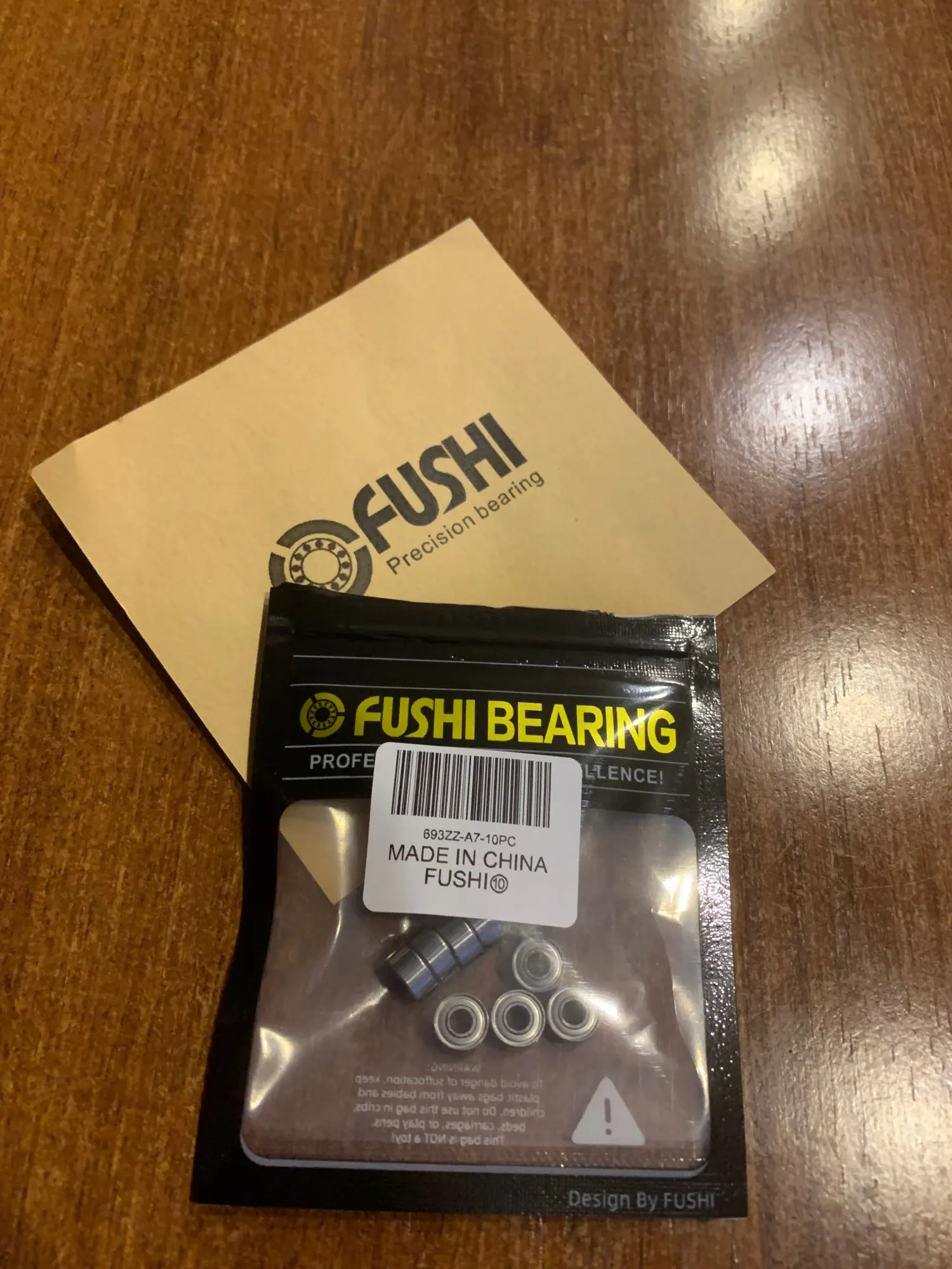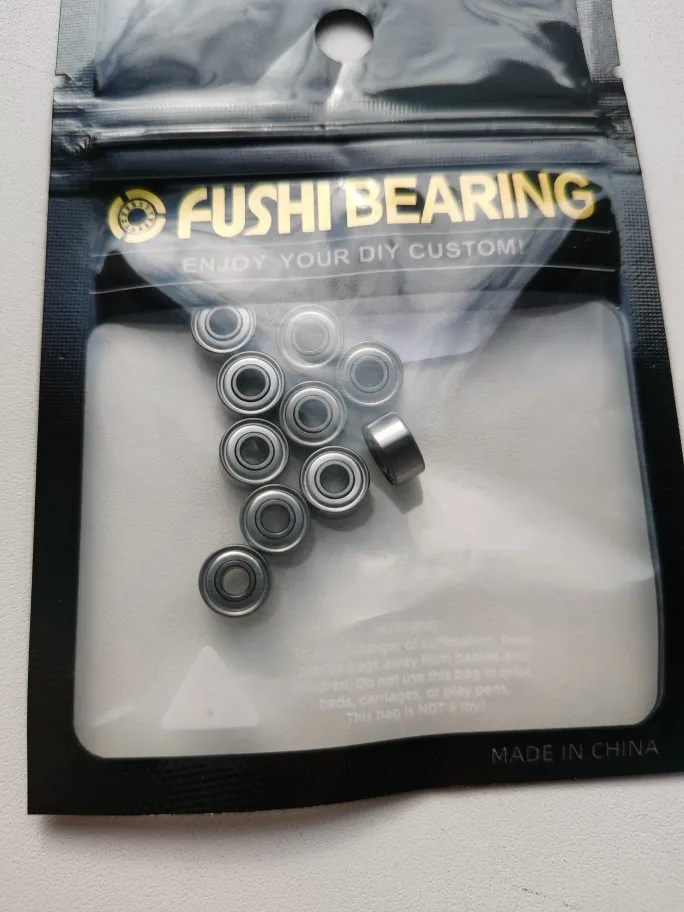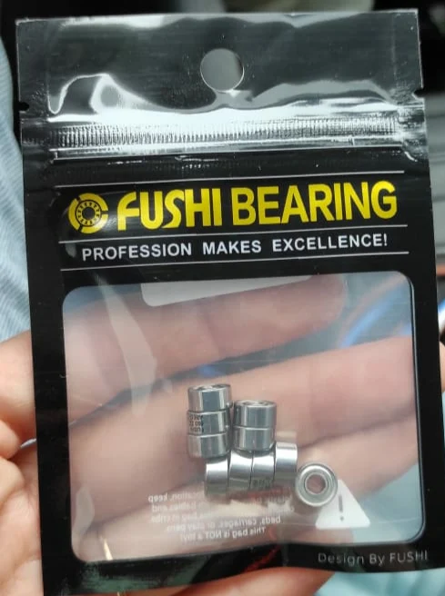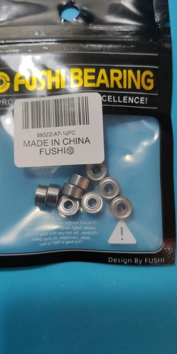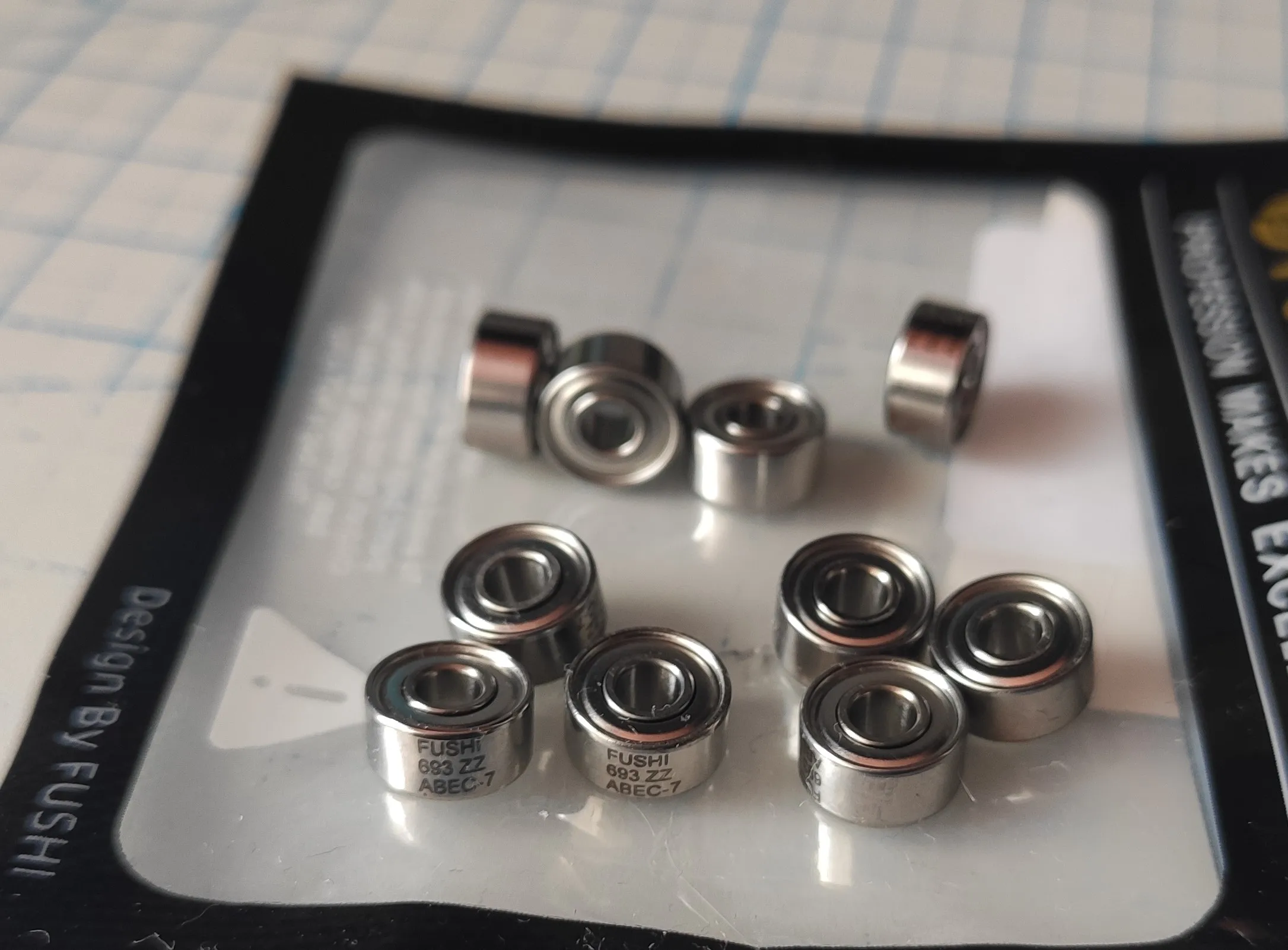 Подшипники 693zz, 10 штук. Внутреннее кольцо подшипников сделано не очень точно, из 10 штук два одеваются на ось с трудом, один двигается по оси свободно, остальные - с легким трением. Выбега у подшипников нет, у "родных" где-то 2 секунды, может дело в том , что подшипники не смазаны. Срок доставки 21 день. Упаковка: подшипники запаяны в фирменный пакет Fushi bearing и вложены в почтовый пакет с "пупырышками".