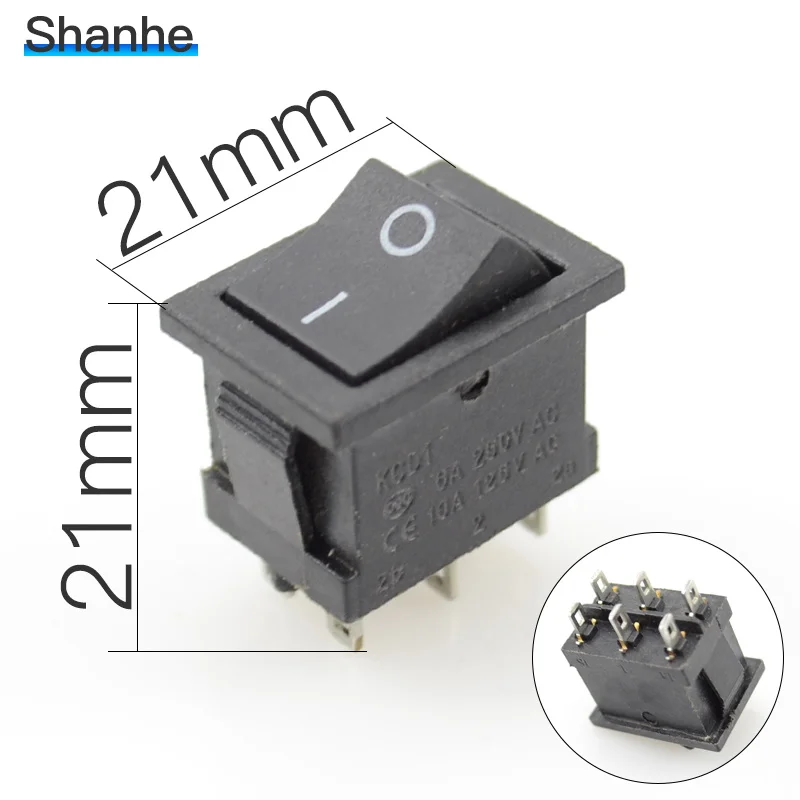 10 шт.лот Mini rocker switch on-off-on 6 pins