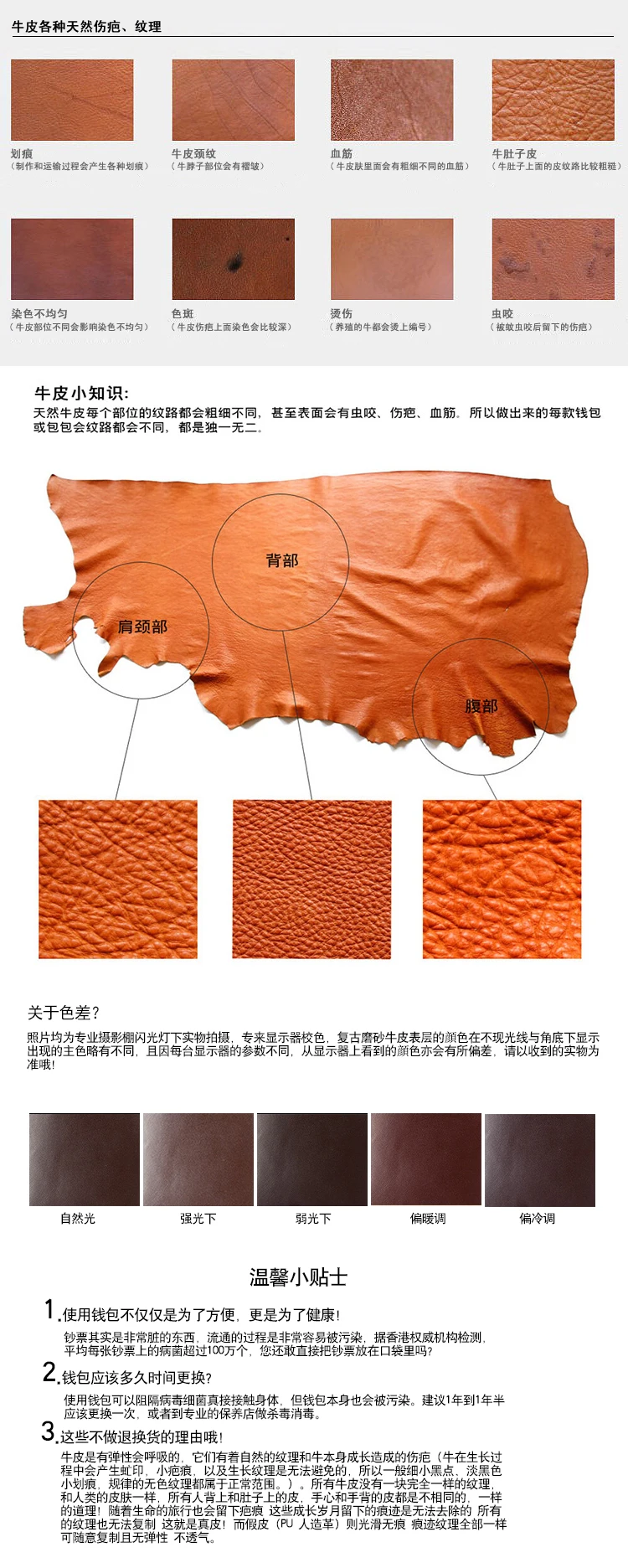 Любые случайные отметки, изменения в тонах и/или текстовые отличия в коже не должны рассматриваться как дефекты. Это характеристики кожи.