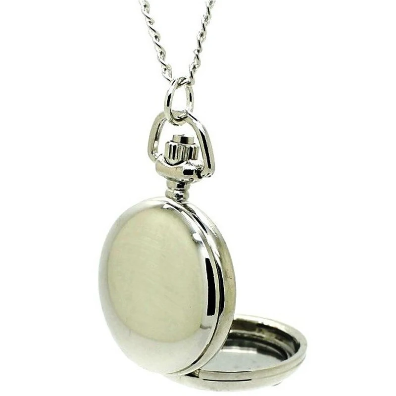 Серебряный тон Клетка цветок кварцевые карманные часы ожерелье