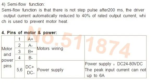 1 Драйвер шагового двигателя: DQ860HA AC и DCПеременный ток: 24 ~ 80 В постоянного тока: 24 ~ 110 В