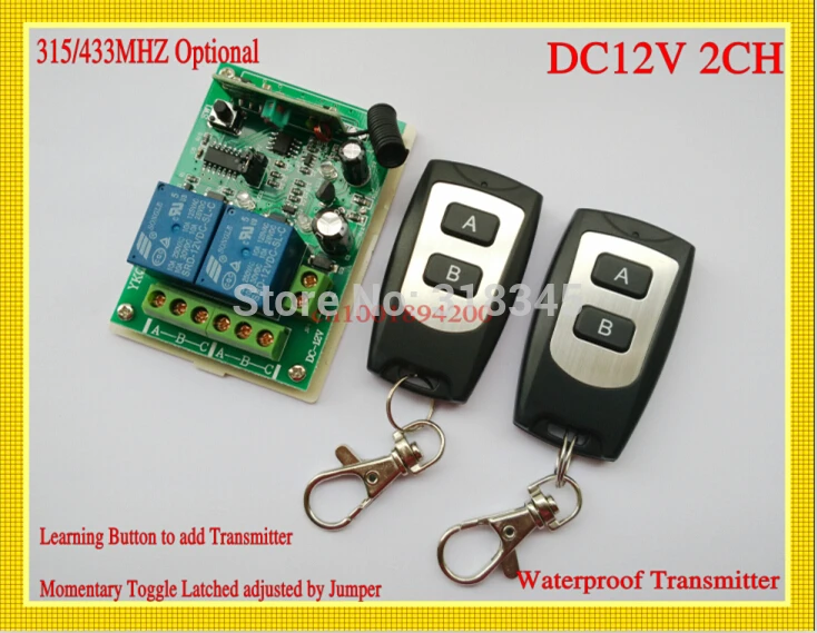 18,38 долларов США/Набор Переключатель дистанционного управления DC12V 2CH, автоматический приемник операторов дверей, 2 передатчика, обучающий код, мгновенный переключатель с фиксацией, 315 МГц