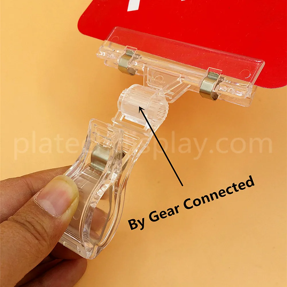 Популярные пластиковые ценники, ярлыки, держатели для карт, бумажный дисплей, рекламные зажимы с зубчатой передачей, вращающиеся, подключенные в розничном магазине