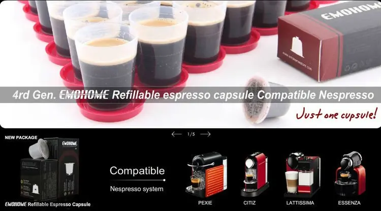 EMOHOME многоразового Кофе капсулы, совместимые с кофеварками Nespresso системы (кроме с фильтром для кофемашины Nespresso-Krups Кофе, тем самым позволяя зернам раскрыться 1 pin зазубрин: F897, F896, F893)