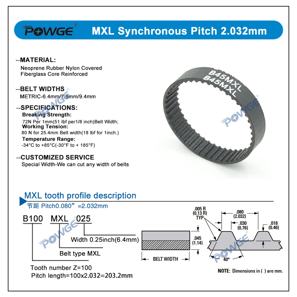 Синхронный ремень синхронизации POWGE MXL шаг 2,032 мм B37B38B40B41...