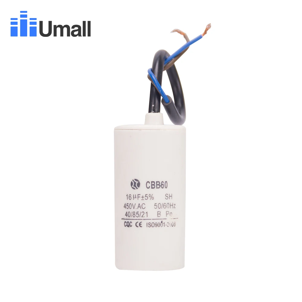 Конденсатор CBB60, 450 в, 16 мкФ, два провода, стартовый конденсатор двигателя для водяных насосов и электродвигателя, прочный супер конденсатор