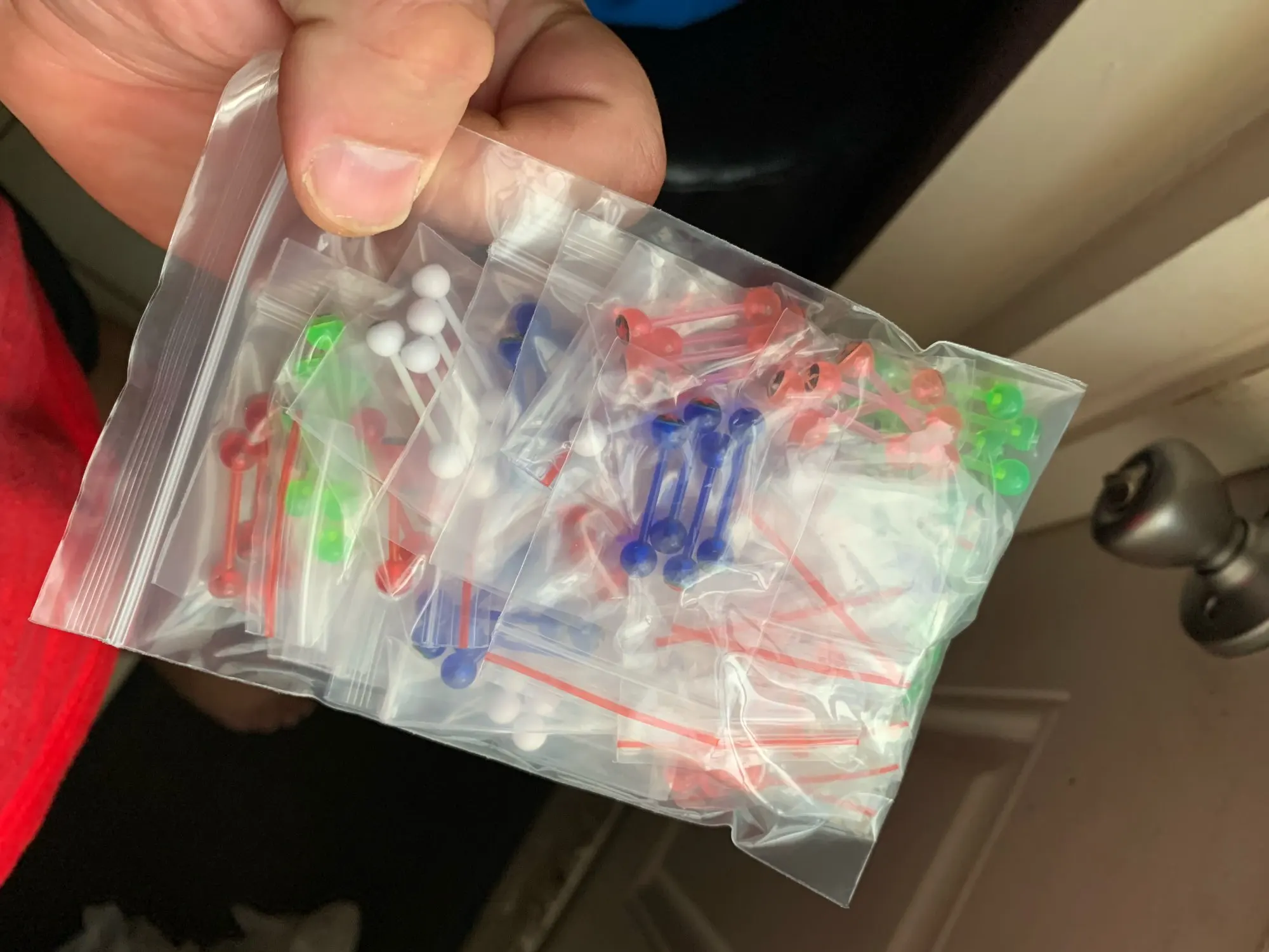 Отзыв о товаре Акриловые украшения для пирсинга тела, разноцветные логотипы, кольцо в язык, 100 шт. от пользователя A***s