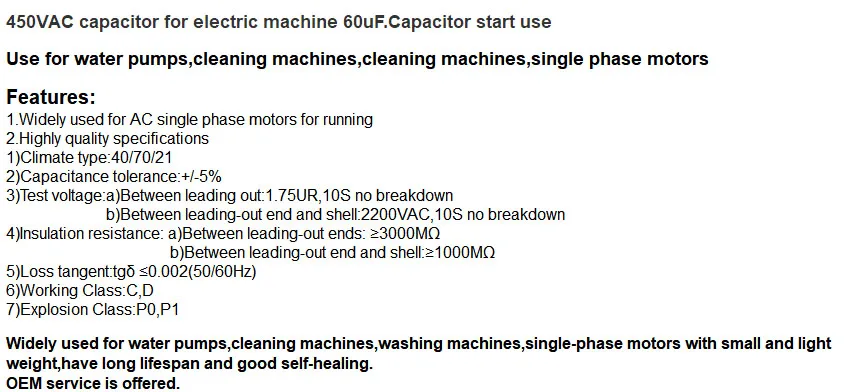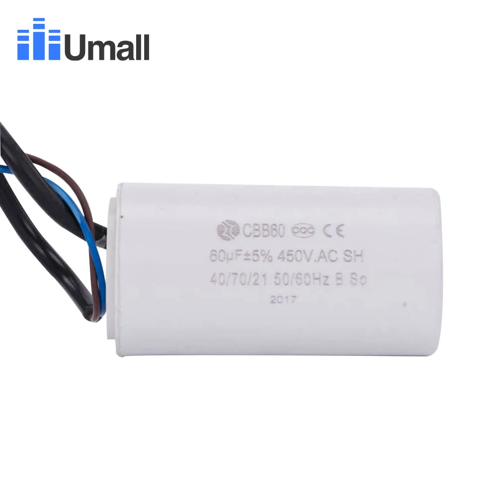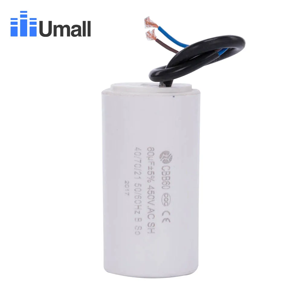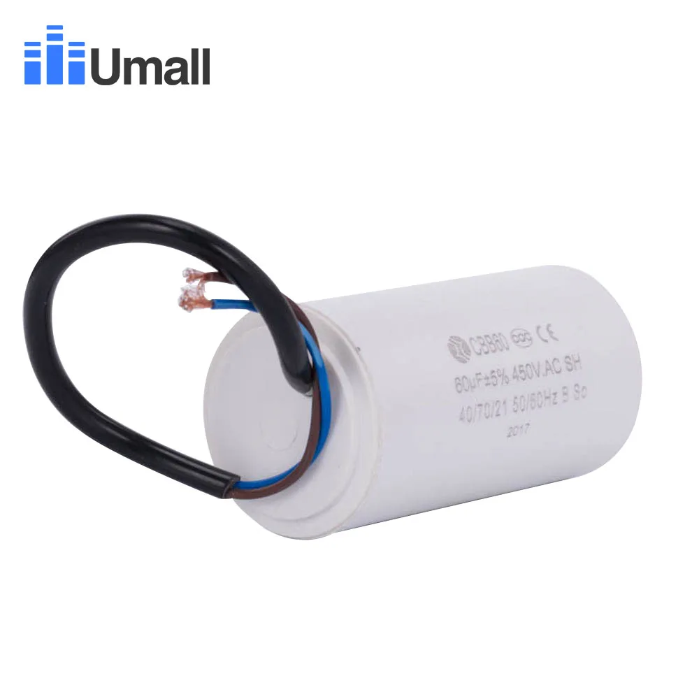 Пусковой конденсатор двигателя, 450 в переменного тока, 60 мкФ, пусковой конденсатор, два провода для электрических стиральных машин, кондиционеров