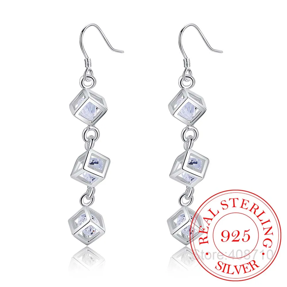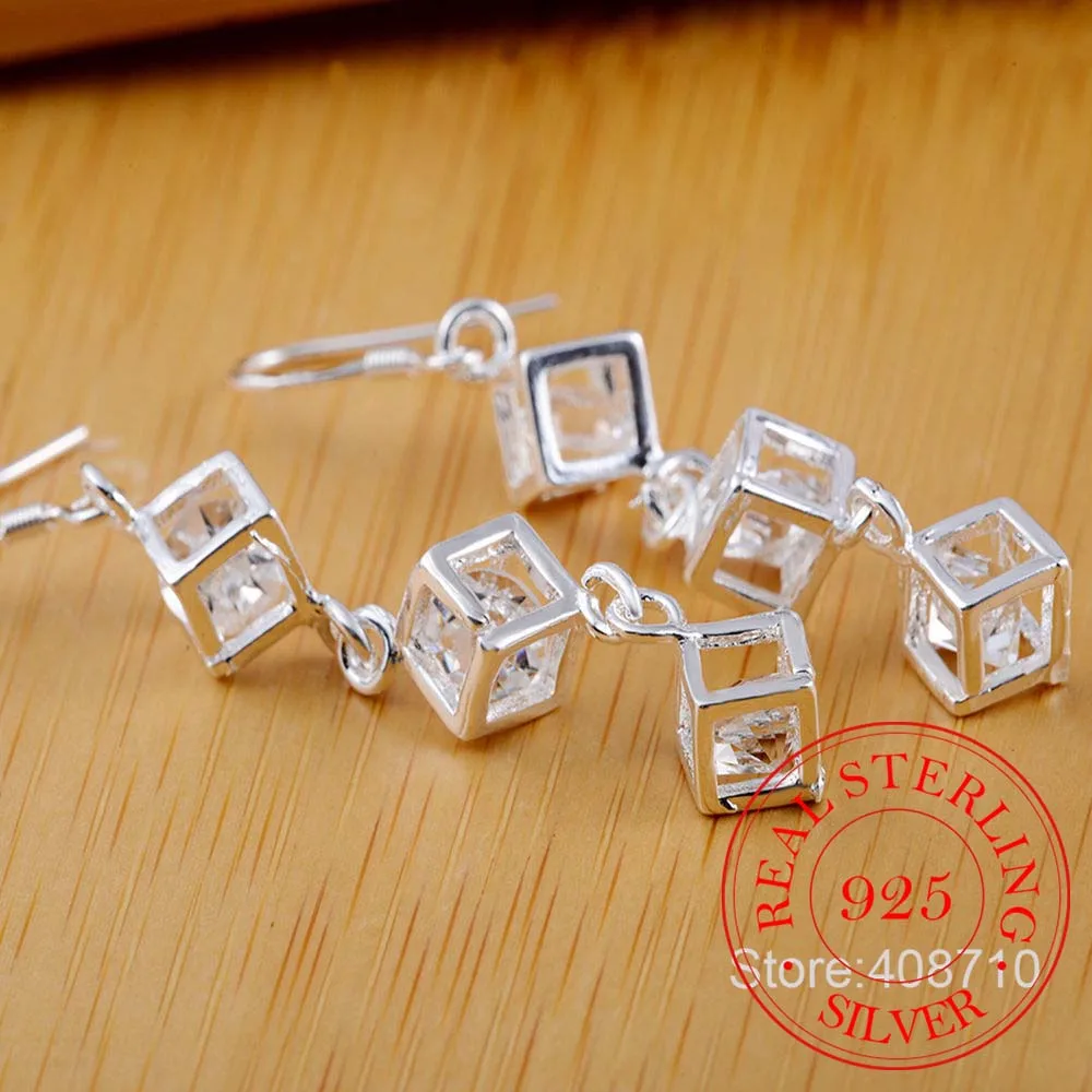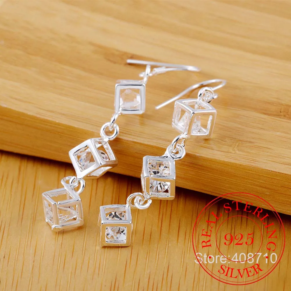 Оптовая продажа, серьги из стерлингового серебра 925 пробы, свадебные ювелирные аксессуары, модные длинные клетчатые серьги с белым узором для женщин 2020