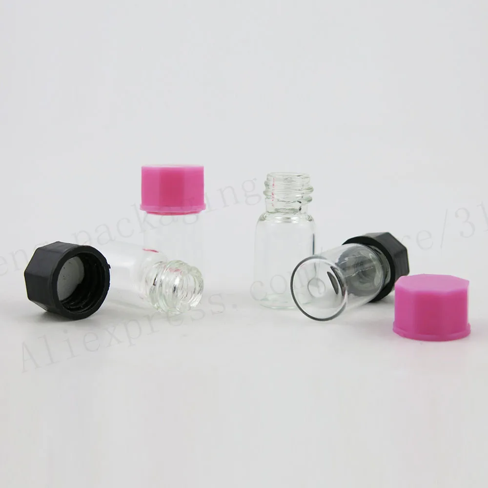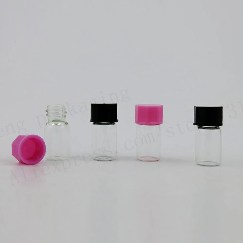 Прозрачные стеклянные флаконы с пластиковыми крышками, мини-винтовая горловина 100x1 мл, стеклянные бутылки для образцов, стеклянные бутылки, банки, контейнеры для косметики