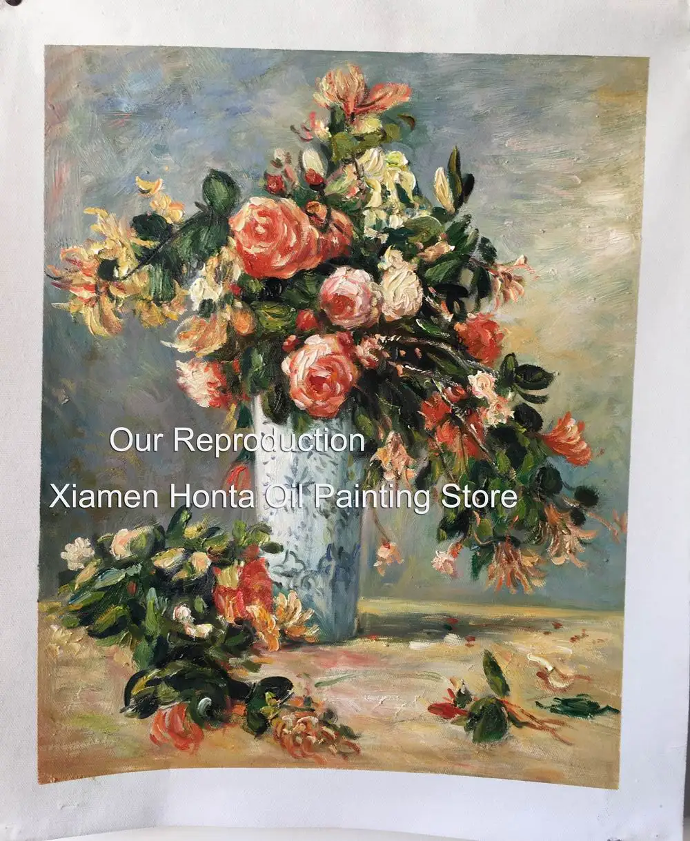 Бесплатная доставка, 100% ручная работа, картина маслом на льняном холсте, розы и Жасмин ina Delft ваза Пьера Ренуары icon star icon star icon star icon star icon star