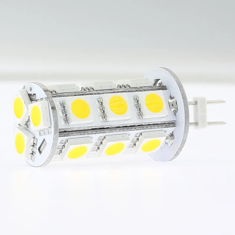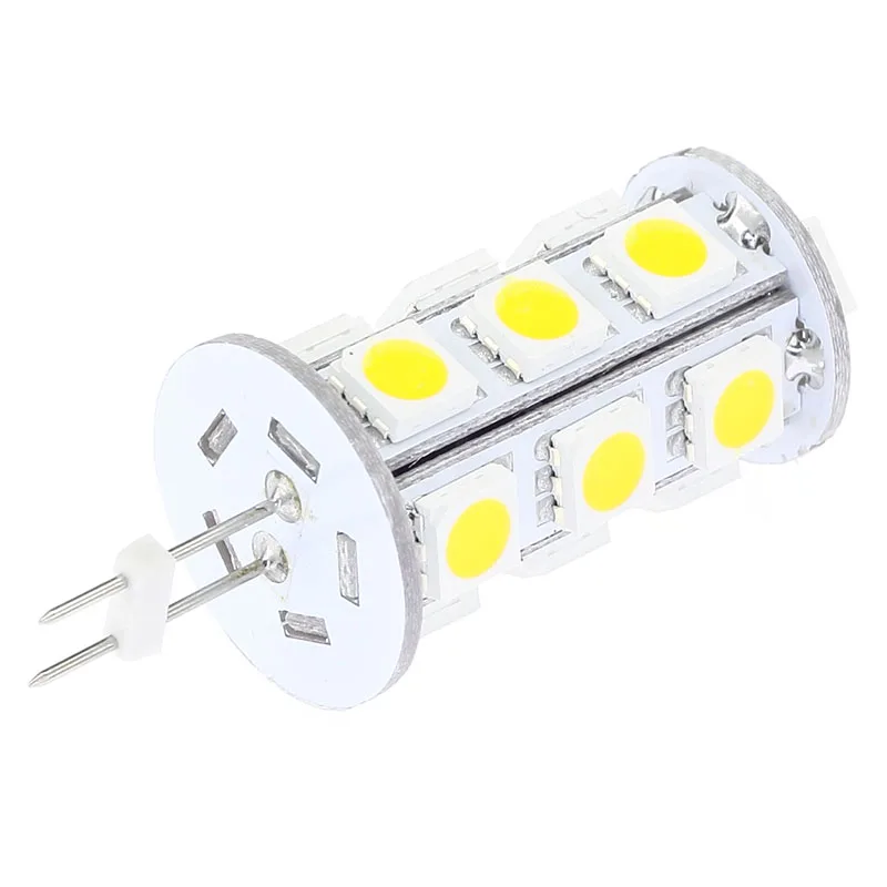 G4 Светодиодный светильник с высокой мощностью, светодиодный s,18 шт. 5050 SMD, светодиодный светильник, тип башни, 360 градусов луч, 6400k Дневной светильник белый и 3200 теплый белый с G4 фитингом, яркость 250 лм эквивалентна 20 Вт-25 Вт галогену. Применение в 12VDC marrine, RV и военных транспортных средств. Bi-pins используются на многих светодиодный фонарях, включая светодиодный MR11 и MR16.
