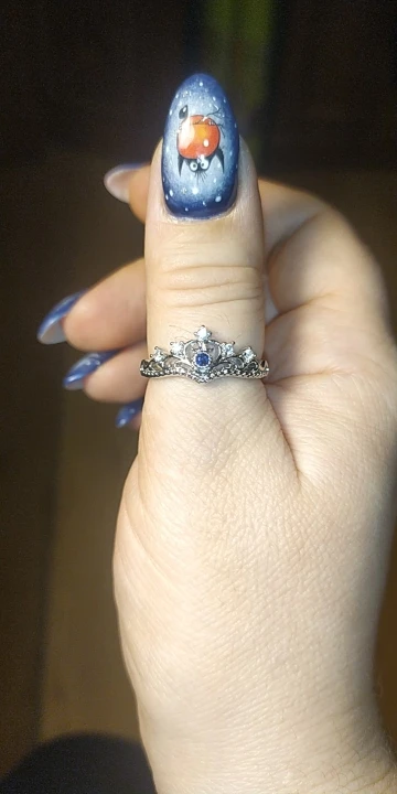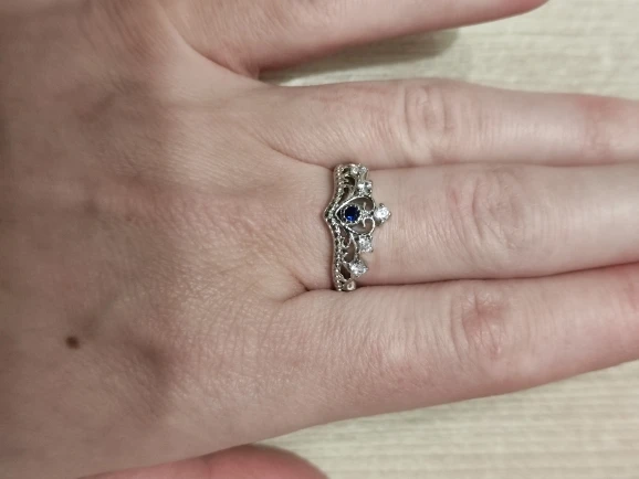 Соответствует образу, очень красивое кольцо. Синий на самом деле менее светлый, чем на фото, но все же заметный. После 1 недели ношения мои руки вперед, чтобы проверить наряд, серебряный Металл начинает немного поворачиваться. Но ничего серьезного