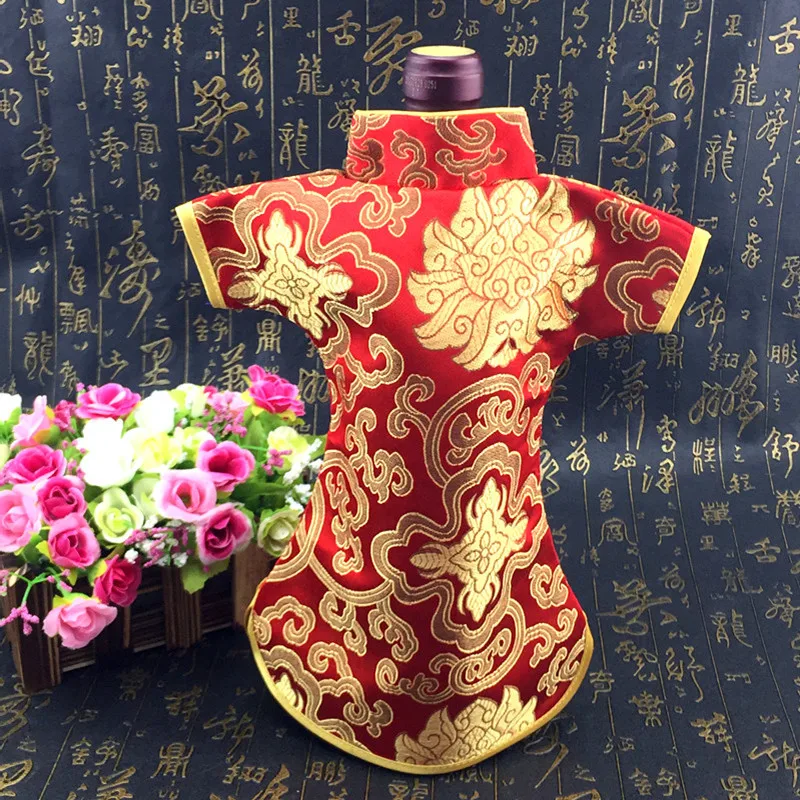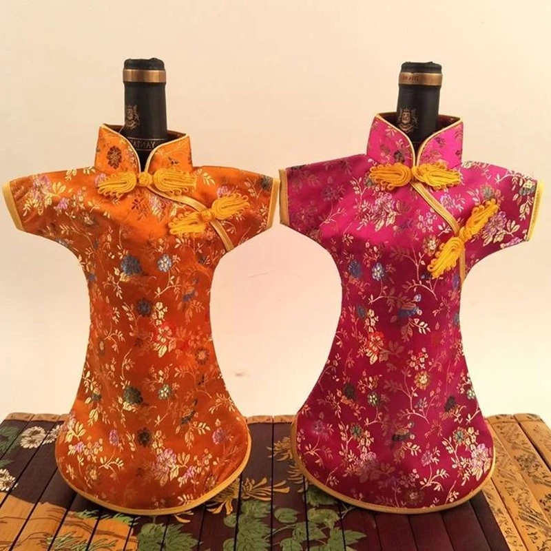 2 шт., элегантные мешки для пыли из китайской шелковой парчи для крышки винной бутылки, 750 мл, для свадьбы, Рождества, украшения стола, упаковочные мешочки