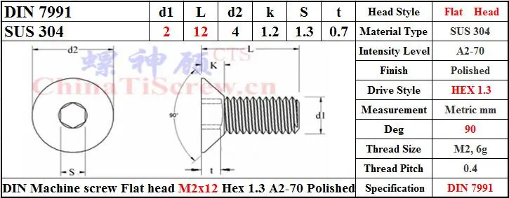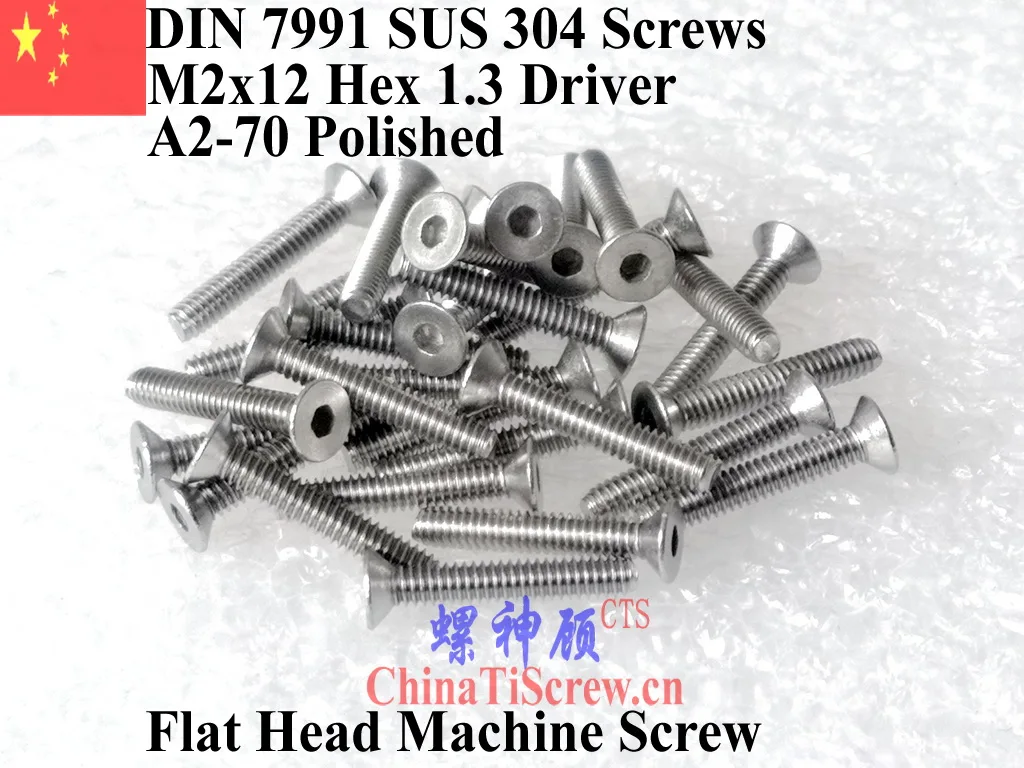 Винты DIN 7991 M2 из нержавеющей стали M2x12, шестигранная отвертка 1,3, полированный ROHS, A2-70 шт.