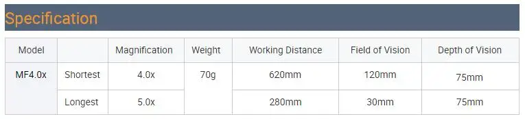 4)Kepler loupes имеет сложную структуру, это не только два стекла. Мы показывает его вес на странице. Речь идет о 0,1 кг для MF4.0x лупы