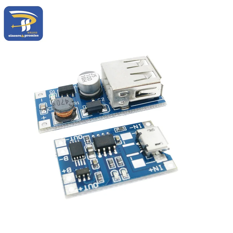 1 партия/2 шт. = 1 шт. TP4056 модуль + 1 шт. DC-DC 5 в модуль усилителя