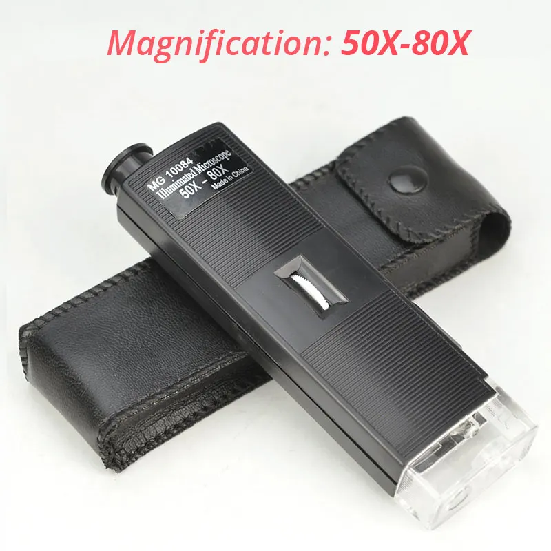 50X-80X Карманный микроскоп с подсветкой Регулируемый мини ручной микроскоп с лампой светильник Подарочная Лупа