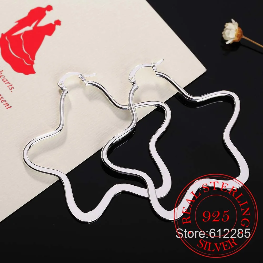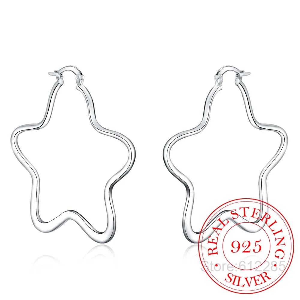 Горячая 925 стерлингового серебра серьги, свадебные украшения, аксессуары, мода корейский Серебряный Большой звезды серьги-кольца для женщин 2020