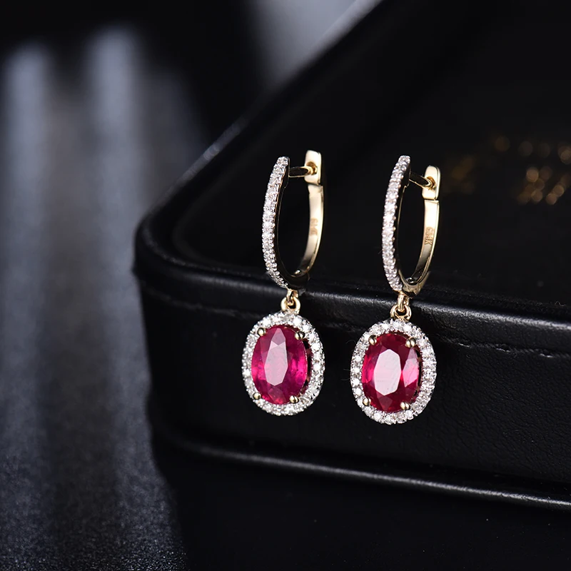 4.76Ct 14Kt Желтое золото бриллиант и красный рубин серьги