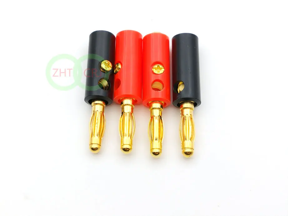 50 шт., высококачественные банановые штекеры 4 мм, позолоченные, красные + черные, длина 40 мм