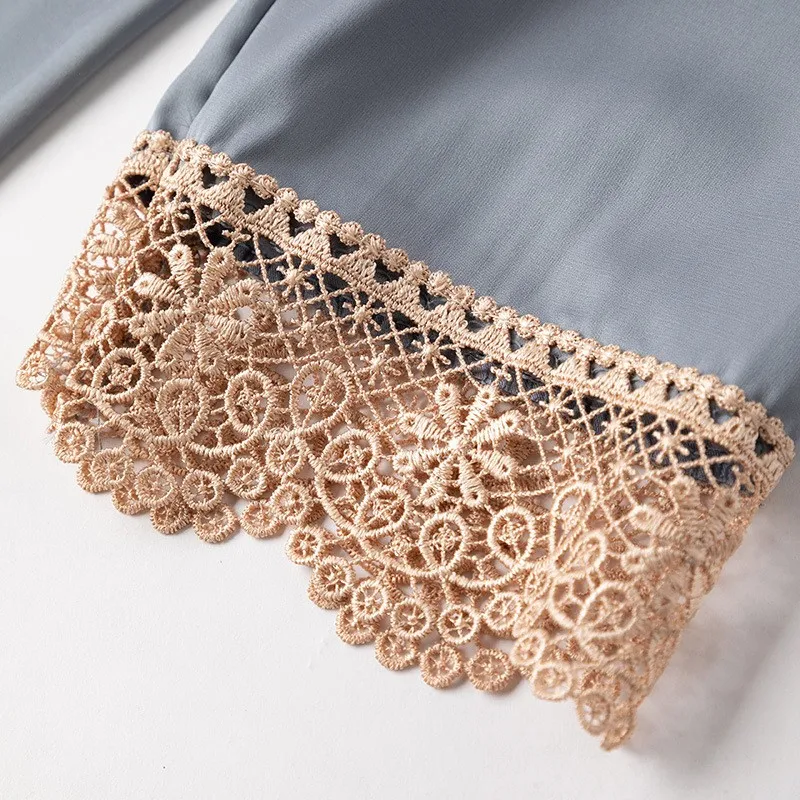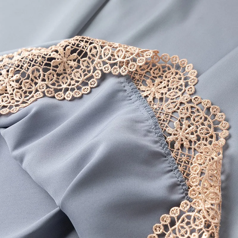Женское кружевное ночное белье с V-образным вырезом, атласная одежда для сна, ночная рубашка с длинным рукавом, летняя тонкая Домашняя одежда, спальная юбка, платье для сна