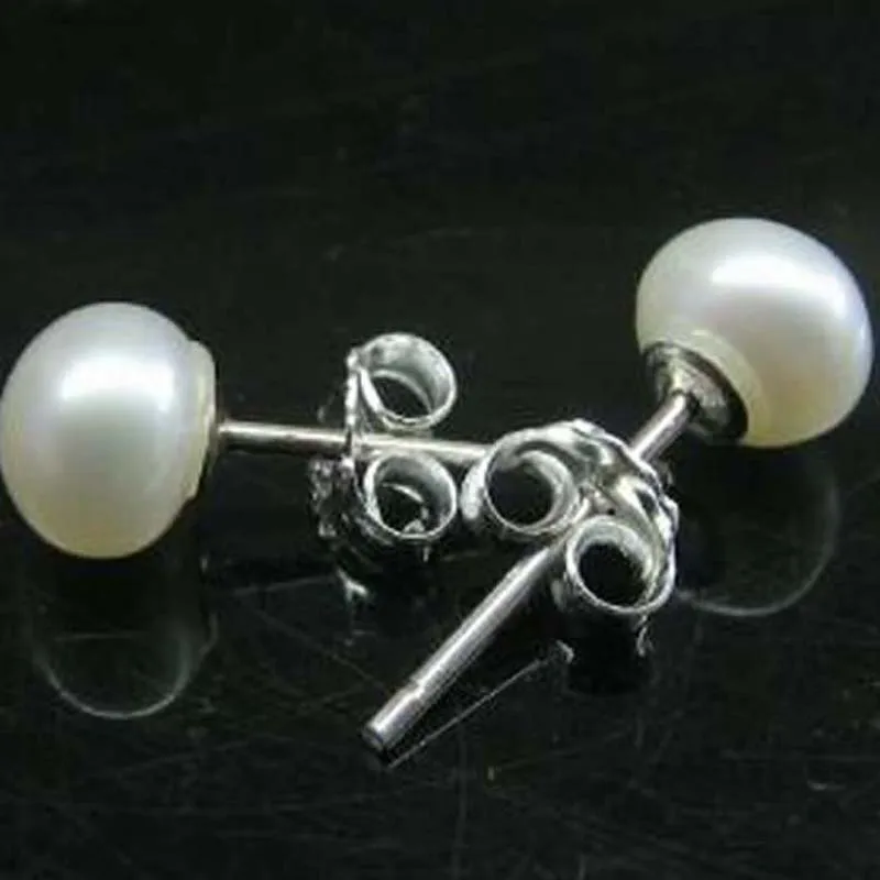 Потрясающие 7,5-8 мм круглый культивированный жемчужные серьги-гвоздики серебро post и задней панели