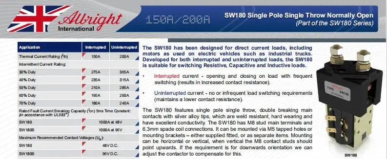 Подлинный Олбрайт SW180 24V SW180B-751 SW180B-4 SW180-4 B2SW23 24V Контактор постоянного тока для электрического Грузоподъемника по электрическая паллетная тележка